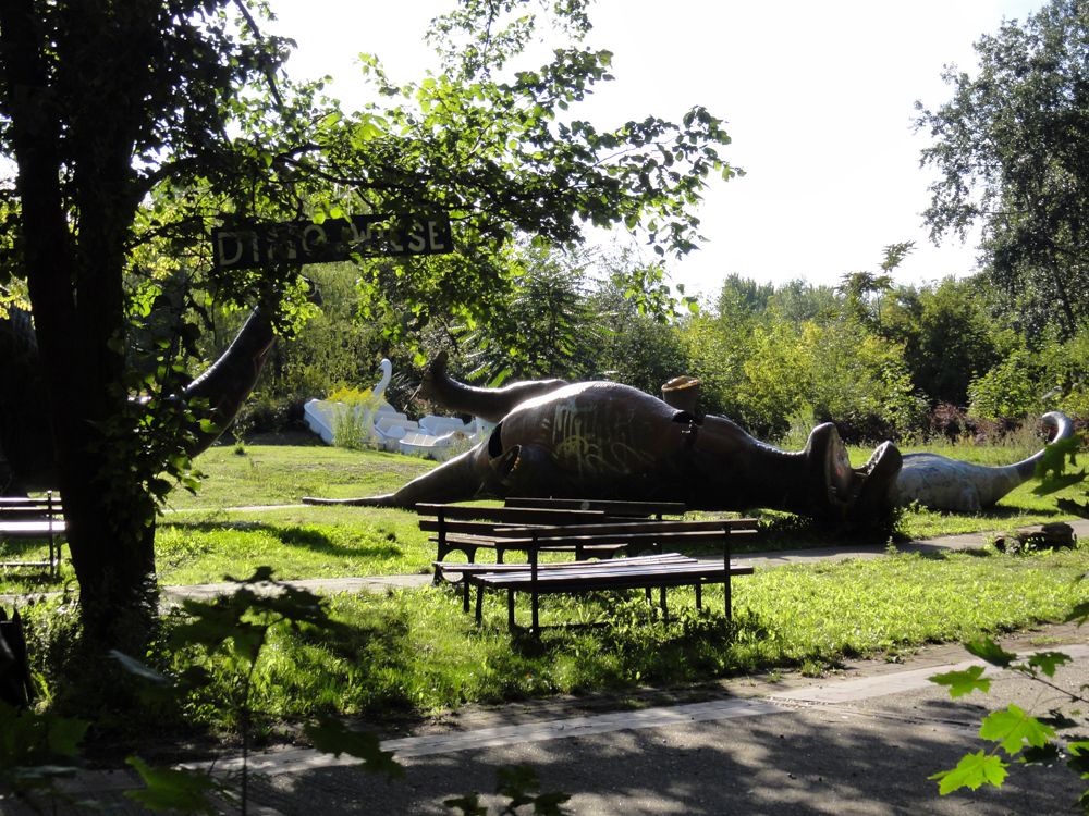 But this last week wasn't all old news. I visited an abandoned amusement park with Eve, and we road the still-operational park train, viewing fallen dinosaurs, dilapidated rides, and a motionless Ferris wheel, all while traveling in and out of dark forest and over swamps. I kept waiting for Scooby Doo and the gang to pop out and unmask the train conductor. Although, I don't think the somewhat pathetic, old amusement park is a typical Berlin attraction.