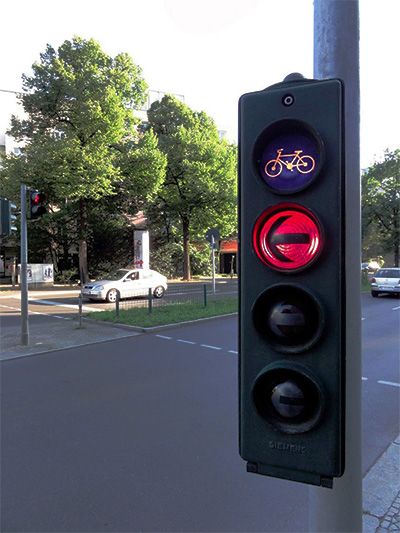 Because the city generously caters to bikers, the experience is so pleasurable. Throughout the city, there are bike lanes; however, these bike lanes aren't like the kinds you might be familiar with in Philly or Chicago, where they remain part of the street, precariously placed between speeding cars and parked cars: sooner or later, you will either be flattened or "doored." In contrast, the bike lanes in Berlin are part of the sidewalk, keeping you away from the flow of cars, especially on busy streets. In addition to this ingenious practice, bike lanes are also outfitted with special bike traffic lights, which are just kind of awesome.