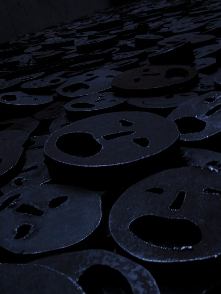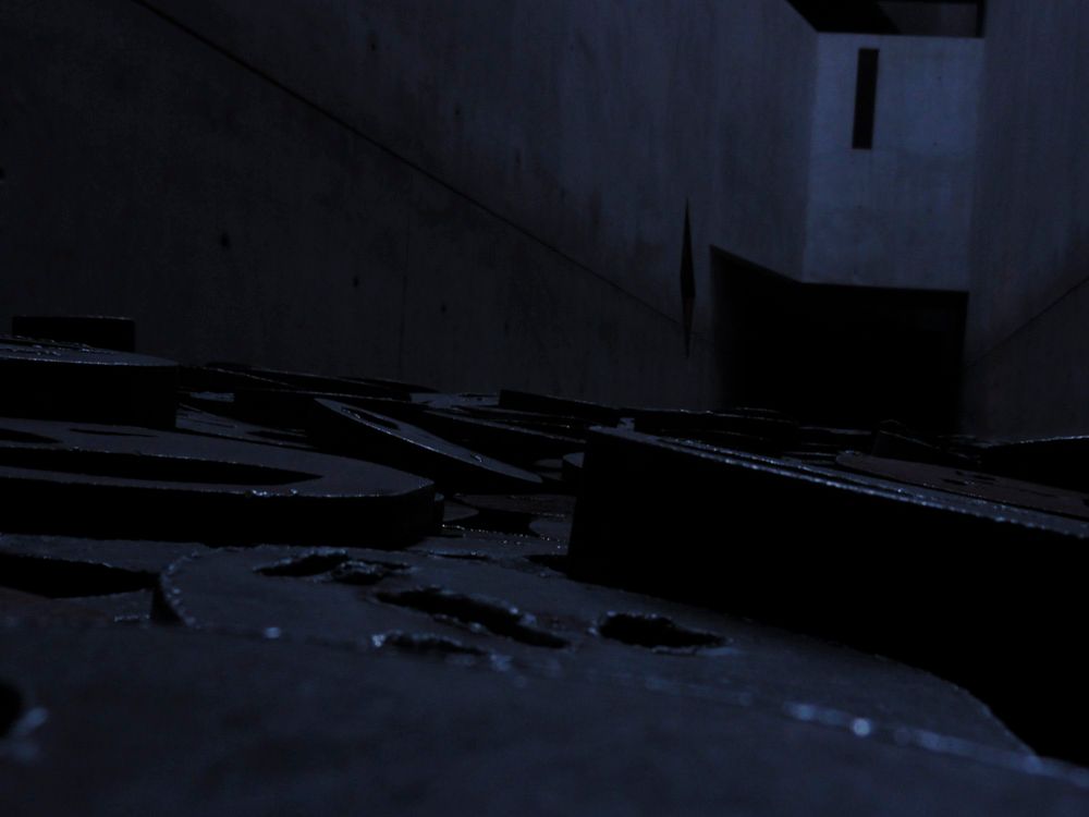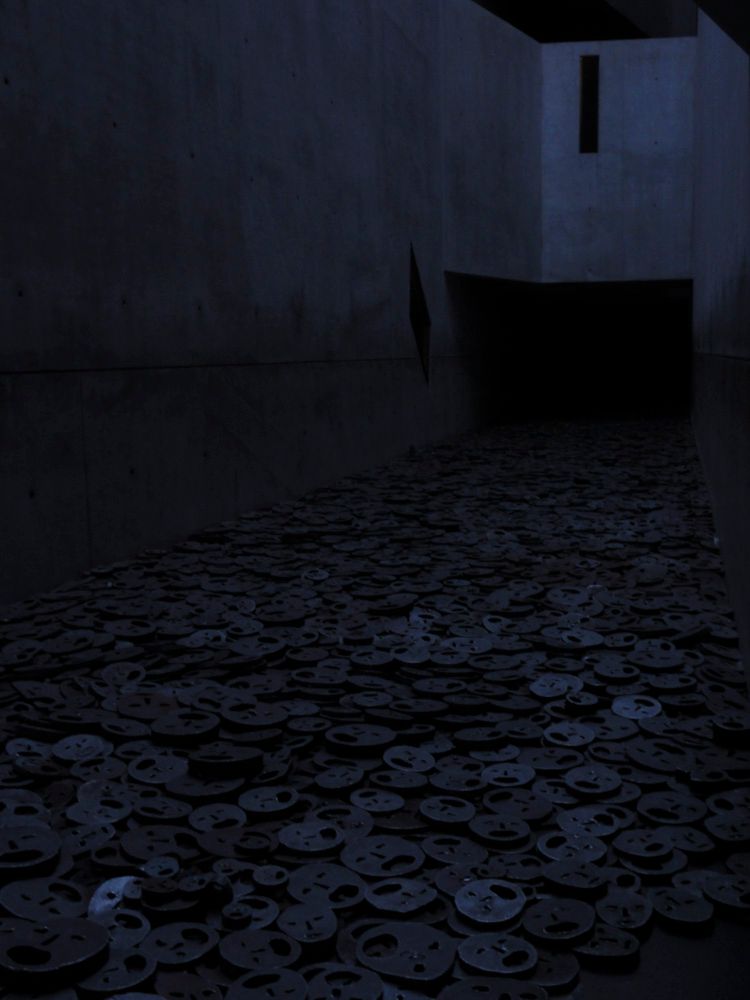 The Memory Void, one of three rooms that captures this empty space, contains an installation that is entitled, "Shalekhet (Fallen Leaves)," by Israeli artist, Menashe Kadishman. In the concrete room, whose walls extend three or four stories upwards, over 10,000 open-mouthed, crude iron faces spread out to cover the floor. Kadishman's intention is an attempt to represent the irretrievable loss of the Jews murdered in Europe. And, as one gazes on all these open-mouths, while only hearing the blankness of a concrete void, this loss is heard.