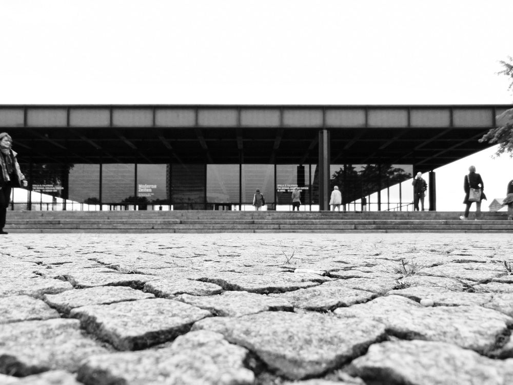 Besides the wonder of these first paintings, the architecture of the gallery is remarkable in itself. Designed by Mies van der Rohe in 1968, the museum is said to be the architect's last great building, opening a year before his death. Naturally, the building reminded me of the towers of glass and steel that stand before Lake Michigan in Chicago; however, rather than the pricey condos and offices that occupy those spaces, this Berlin gallery has been constructed with the experience of "looking at art" in mind. This experience, which can often become laborious, leaving you feeling rushed, bored, trapped, claustrophobic, or, as Ferlinghetti puts it, "constipated," this museum is noticeably different.